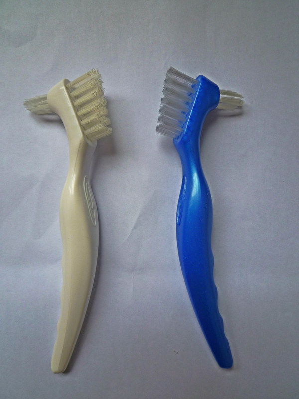 hard & fluent handle for cleaning fake teeth easily ,two sizes of bristal for cleaning thoroughly